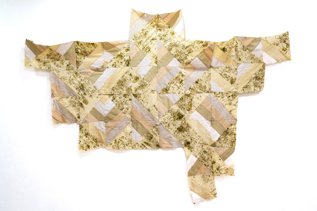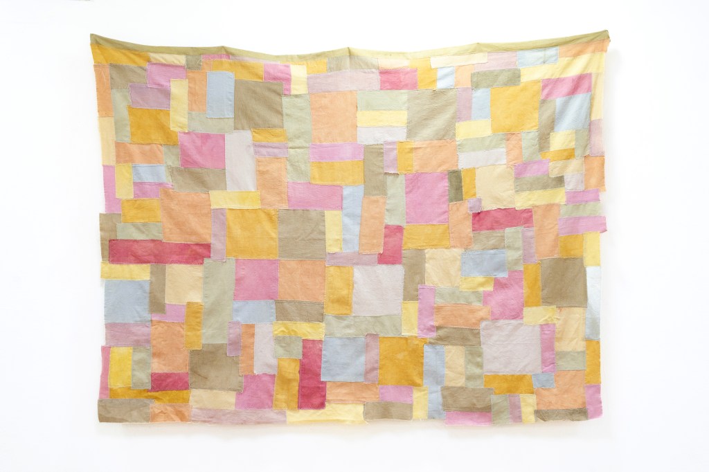 Las piezas, recuperan los fragmentos «buenos» de lienzos más grandes y unen uno a uno fragmentos hechos en diversos momentos y que buscaron -sin -éxito- ser una pieza en su totalidad. Recupero también prácticas textiles de diversas culturas, en las que reparar y hacer piezas a partir de lo roto y fragmentado es una práctica cotidiana que aporta la belleza de la memoria y la experiencia.